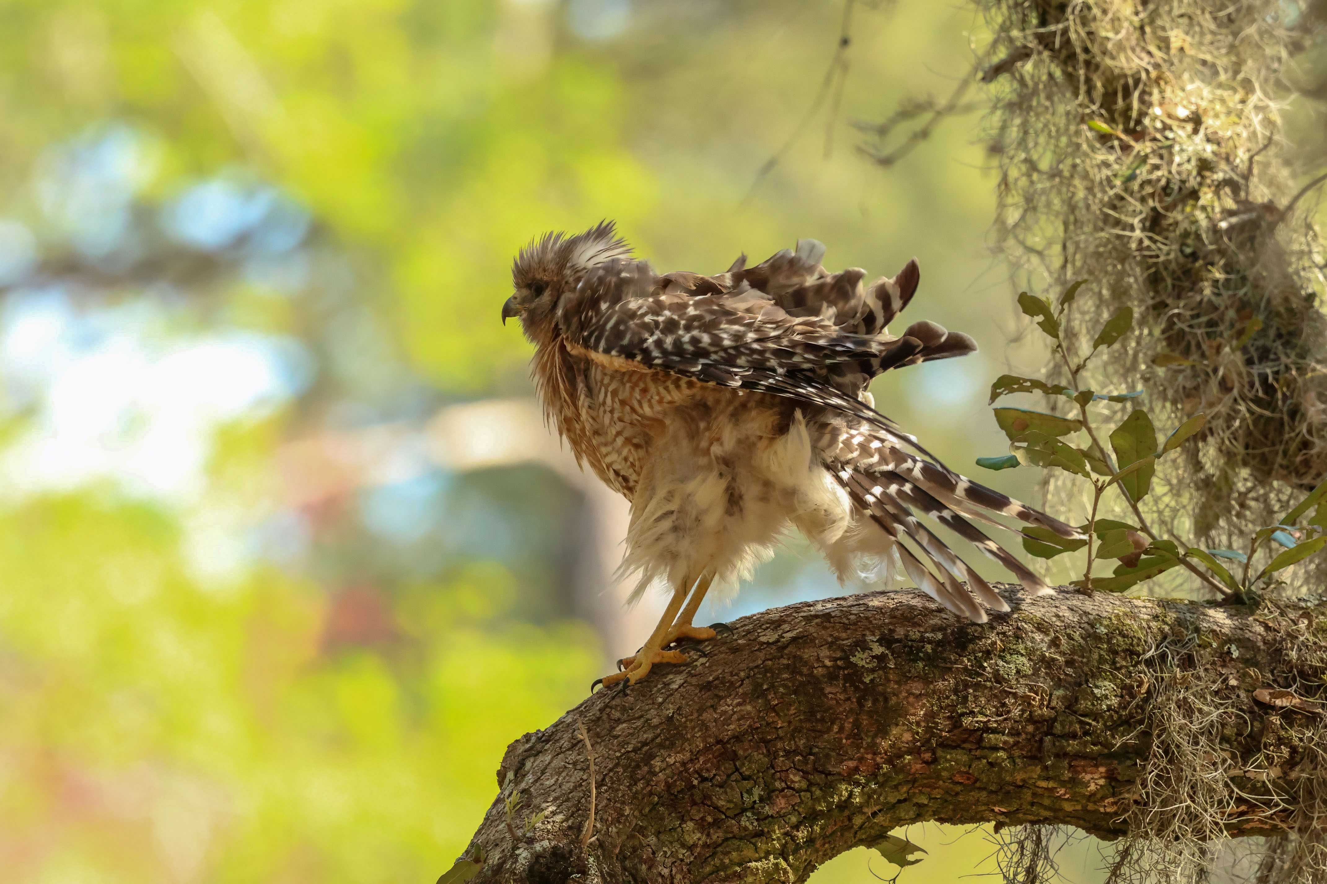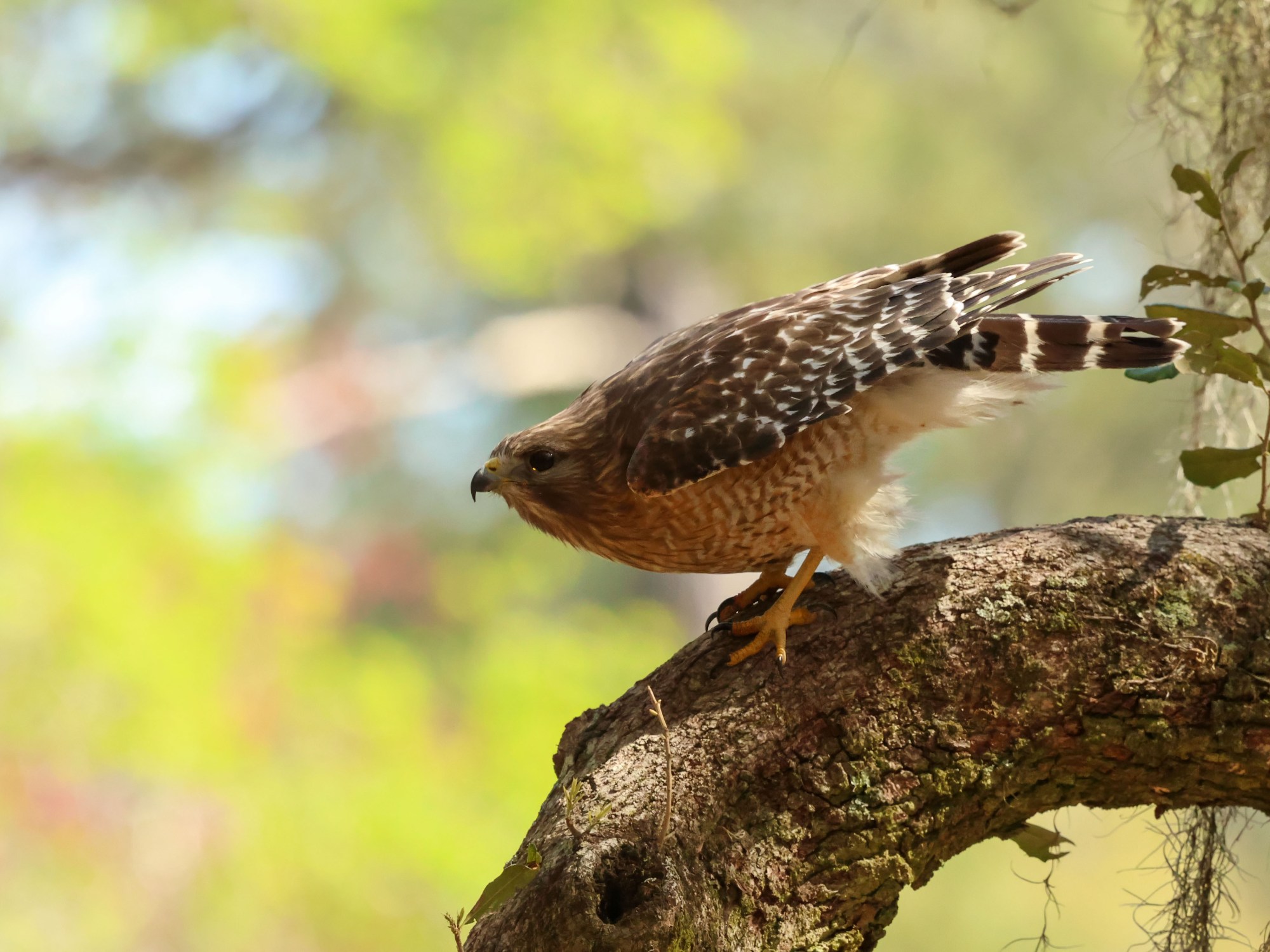 I think my favorite “wooded bird” encounter of the week was when a gorgeous Red-shouldered Hawk flew over our heads and perched on a nearby branch.