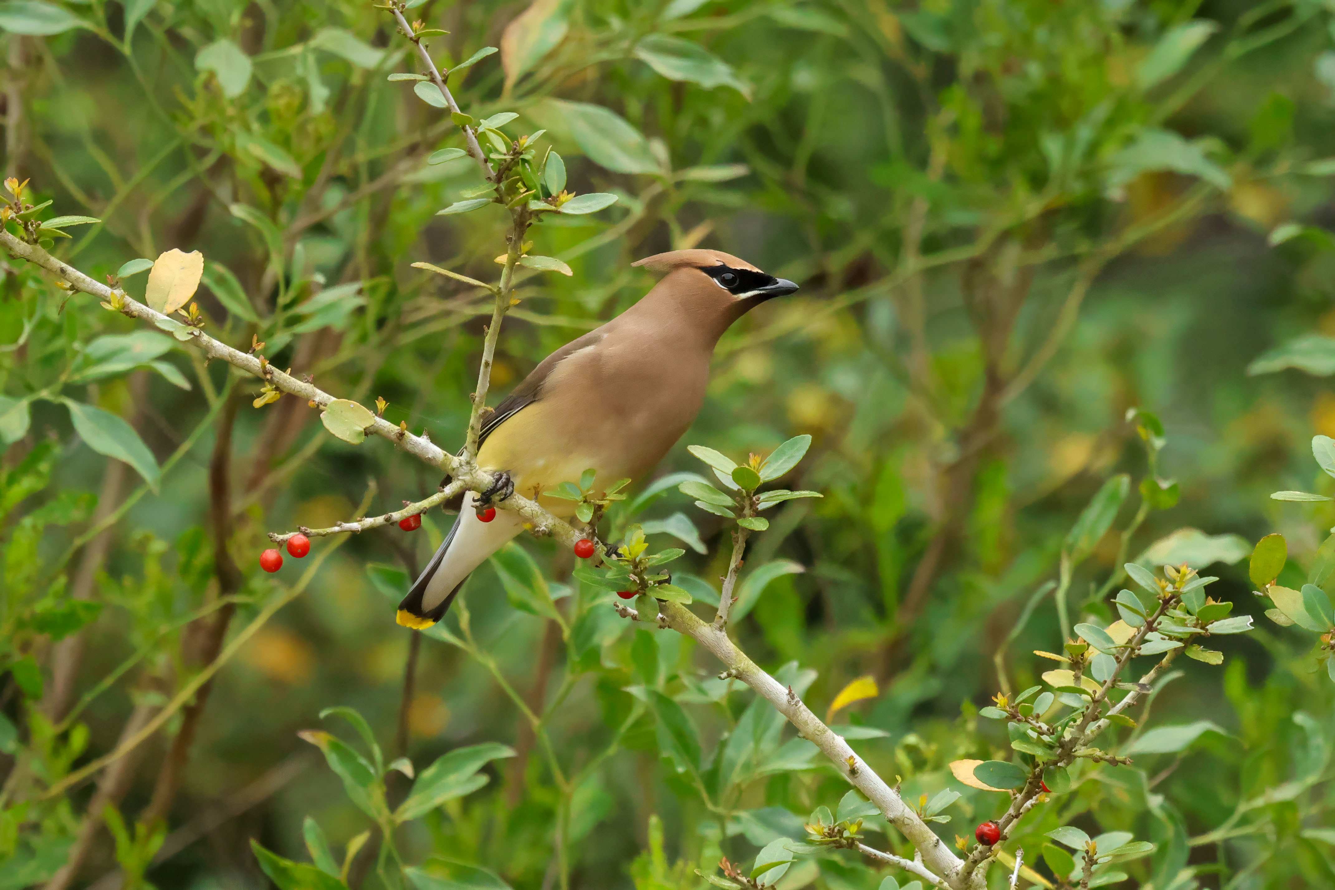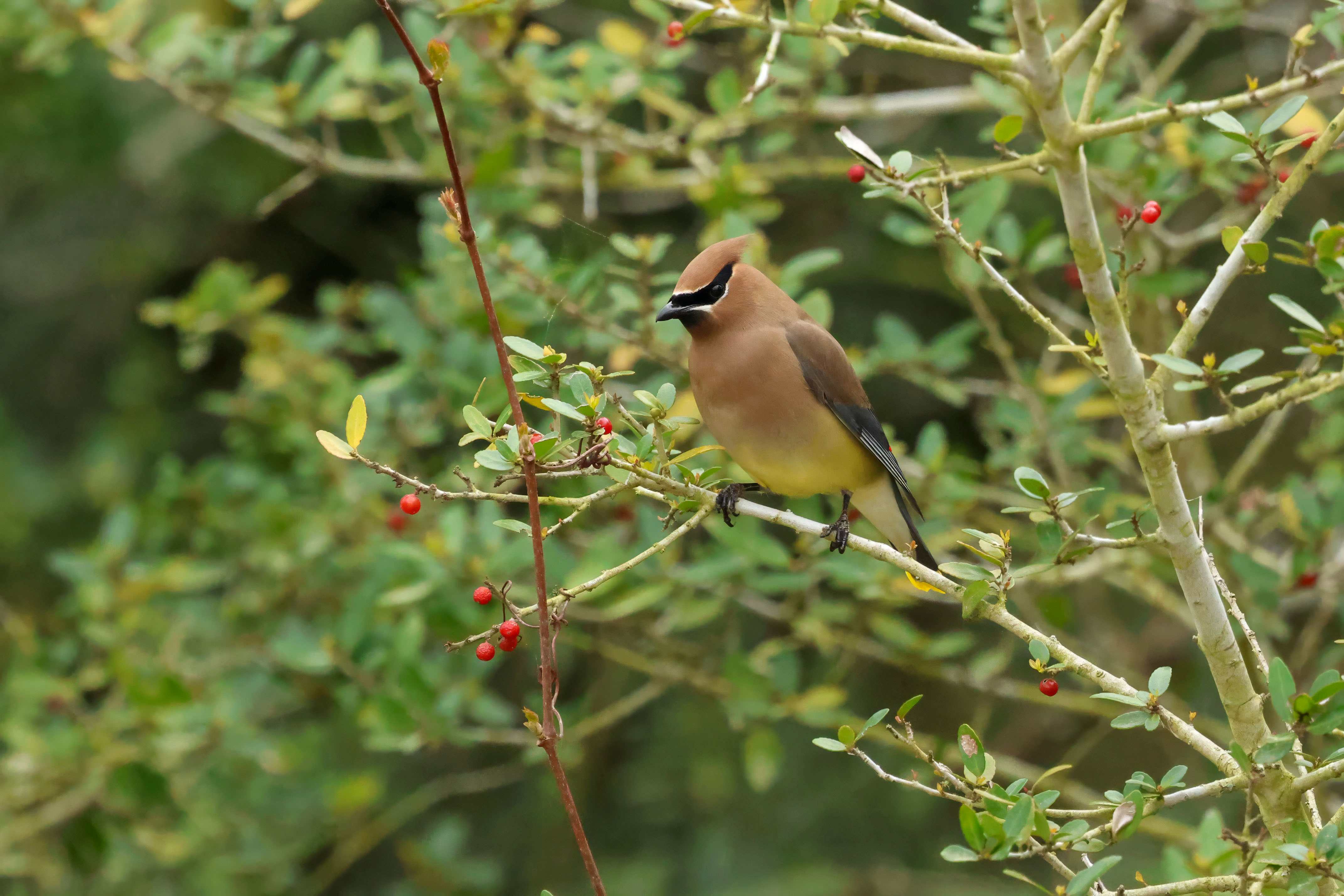 I was hoping to get a shot of one of these beautiful birds with a berry in its beak, but alas, the speed of the camera operator couldn’t compete with the speed of the berry bandit!
