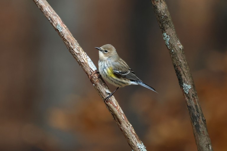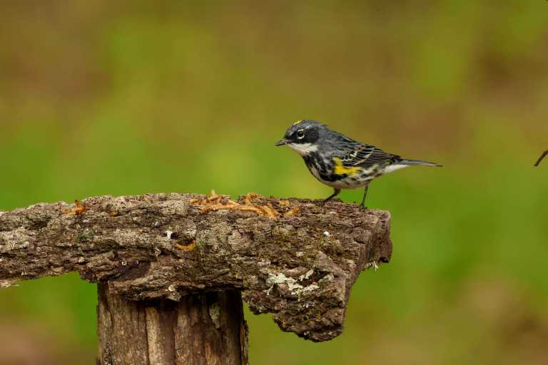 You can tell breeding season is upon us when the male Yellow-rumped Warblers shed their tawny tones and take on that small, dark, and handsome appearance.