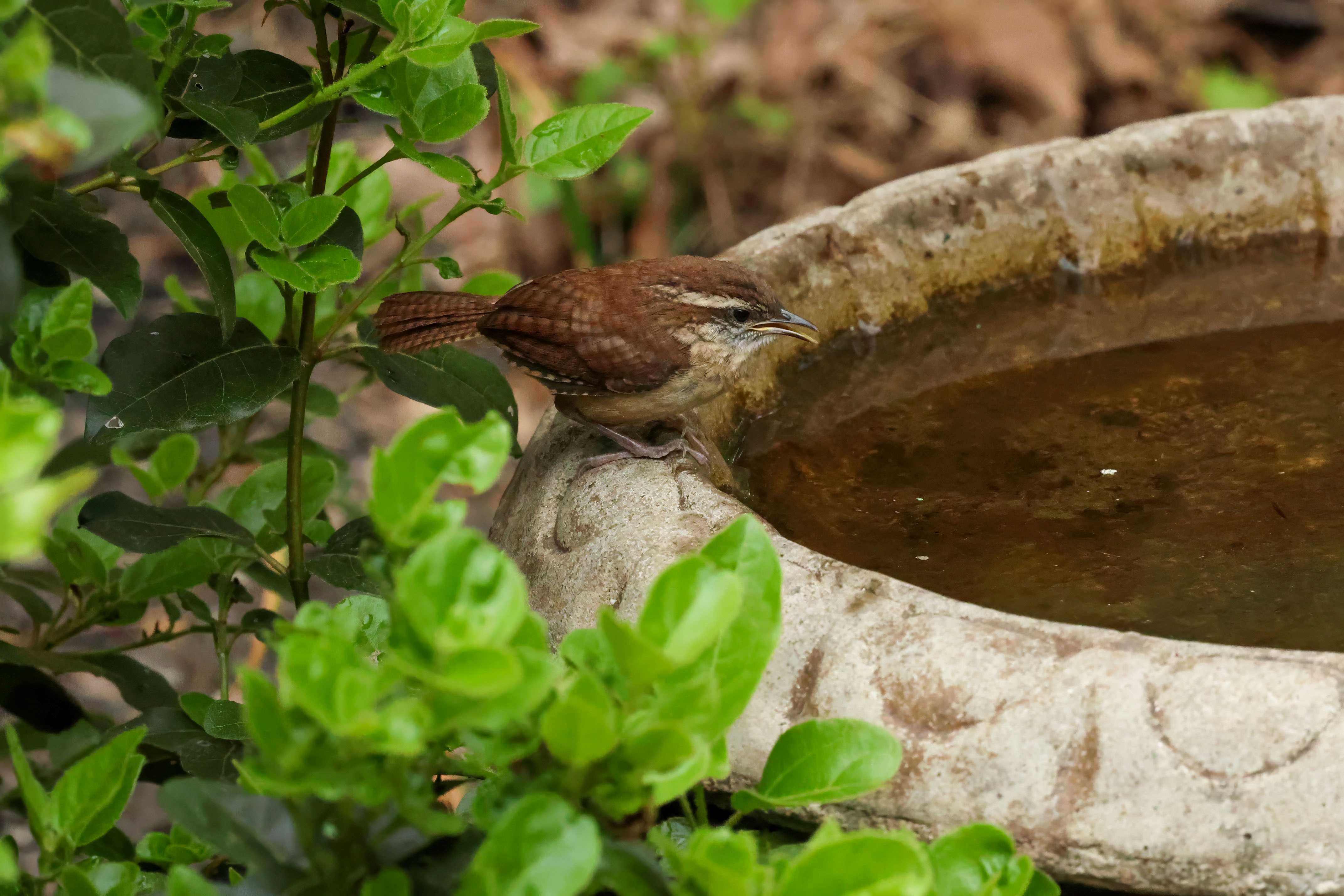 So, while Mom was gathering a meal, one of them took off to investigate the birdbath…